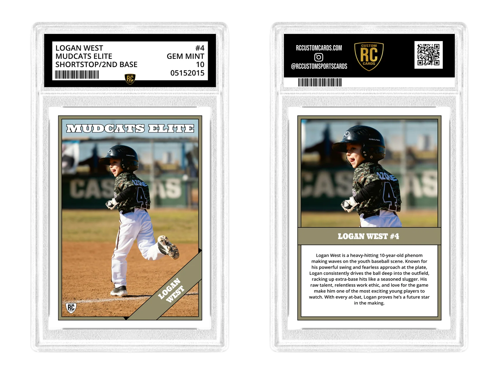 Have a picture you want turned into a graded sports card? We've got you covered! Simply select from one of our 9 designs, add your name and picture, and you're set! If you want to spice things up, feel free to add one of our three special finishes, holographic, cracked ice, or sparkle, and your personalized stats on the back.